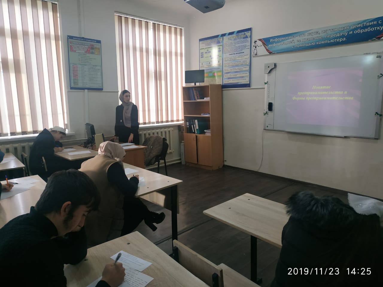23 ноября 2019 года учитель истории и обществазнании Расумова З.Ш. провела открытый урок среди учащихся 11х классов на тему: "Предпринимательская деятельность".