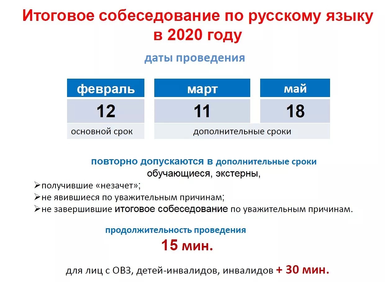 Расписание итогового собеседования по русскому языку в 9 классах.