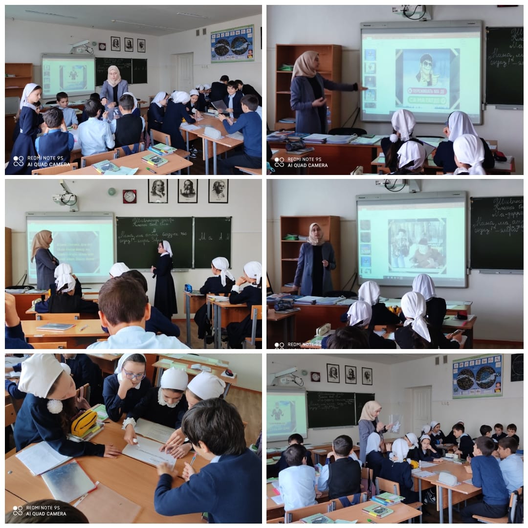 Учителем чеченского языка и литературы Сулеймановой Х.У. был проведён открытый урок чеченского языка с учащимися 5 "Б" класса на тему "Ма-даррачу къамелехь сацаран хьаьркаш".