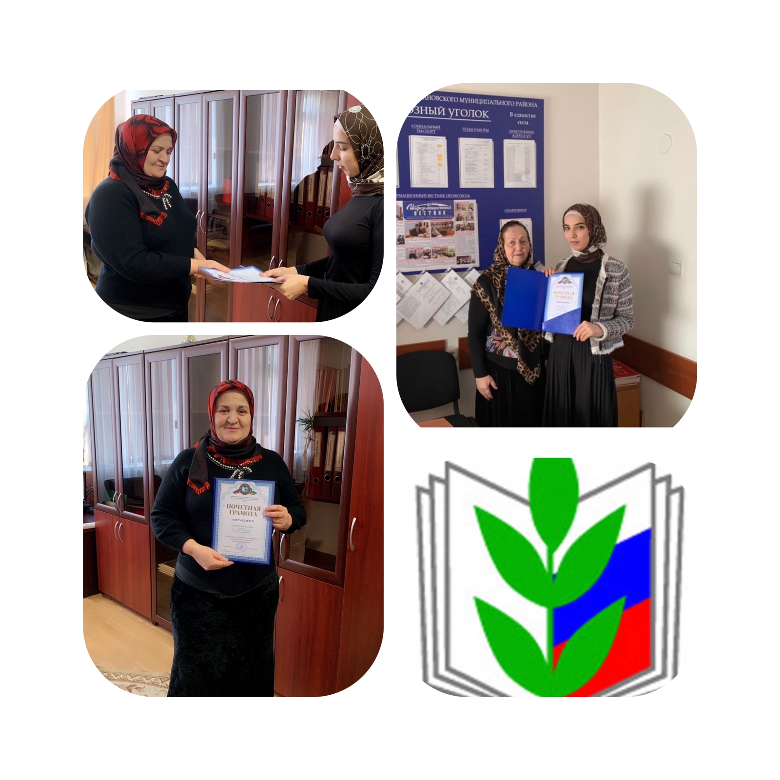 Директор МБОУ «СОШ 2 с. Закан-Юрт им. Д.С. Саитова» Акуева Р.А. и председатель ППО Умарова А.К. были награждены грамотами за добросовестный труд и активное участие в общественной жизни от ОБЩЕРОССИЙС