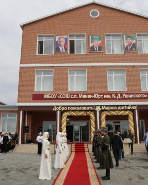 В СЕЛЕ МЕКЕН-ЮРТ НАДТЕРЕЧНОГО МУНИЦИПАЛЬНОГО РАЙОНА ЧЕЧЕНСКОЙ РЕСПУБЛИКИ СОСТОЯЛОСЬ ОТКРЫТИЕ НОВОЙ ШКОЛЫ, НАЗВАННОЙ ИМЕНЕМ ОСНОВОПОЛОЖНИКА ОТЕЧЕСТВЕННОЙ НАУЧНОЙ ПЕДАГОГИКИ КОНСТАНТИНА ДМИТРИЕВИЧА УШИНСКОГО