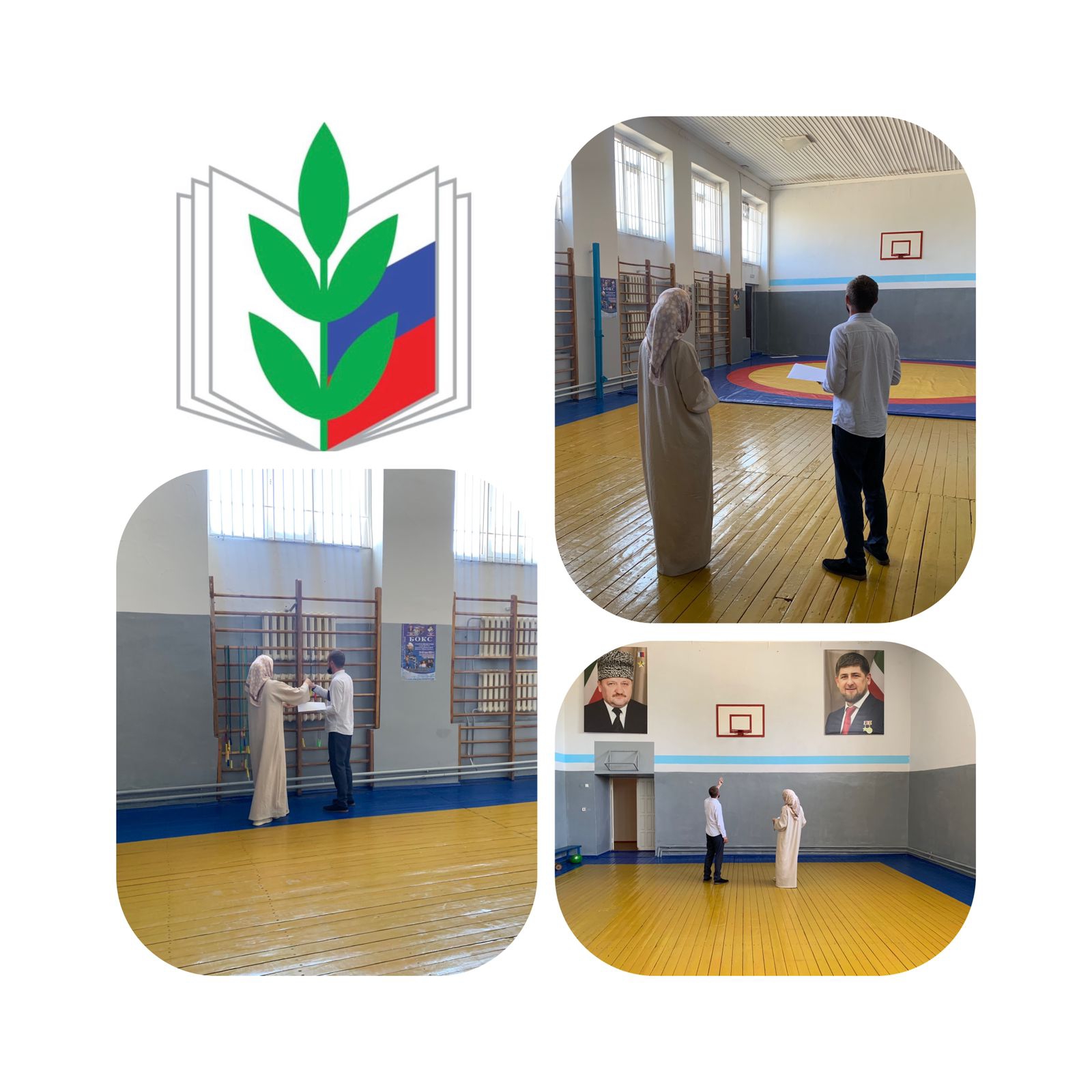 В 30.08.2023г. в соответствии с постановлением президиума Рессовета образования в МБОУ "СОШ №2 с.Закан-Юрт им.Д.С. Саитова» вместе с уполномоченным по охране труда ППО Зайпулаевым А.М. была проведена тематическая проверка соблюдения техники безопасности в спортивном зале и спортивной площадке. В ходе проверки нарушений не выявлено. (Председатель ППО Умарова А.К.)