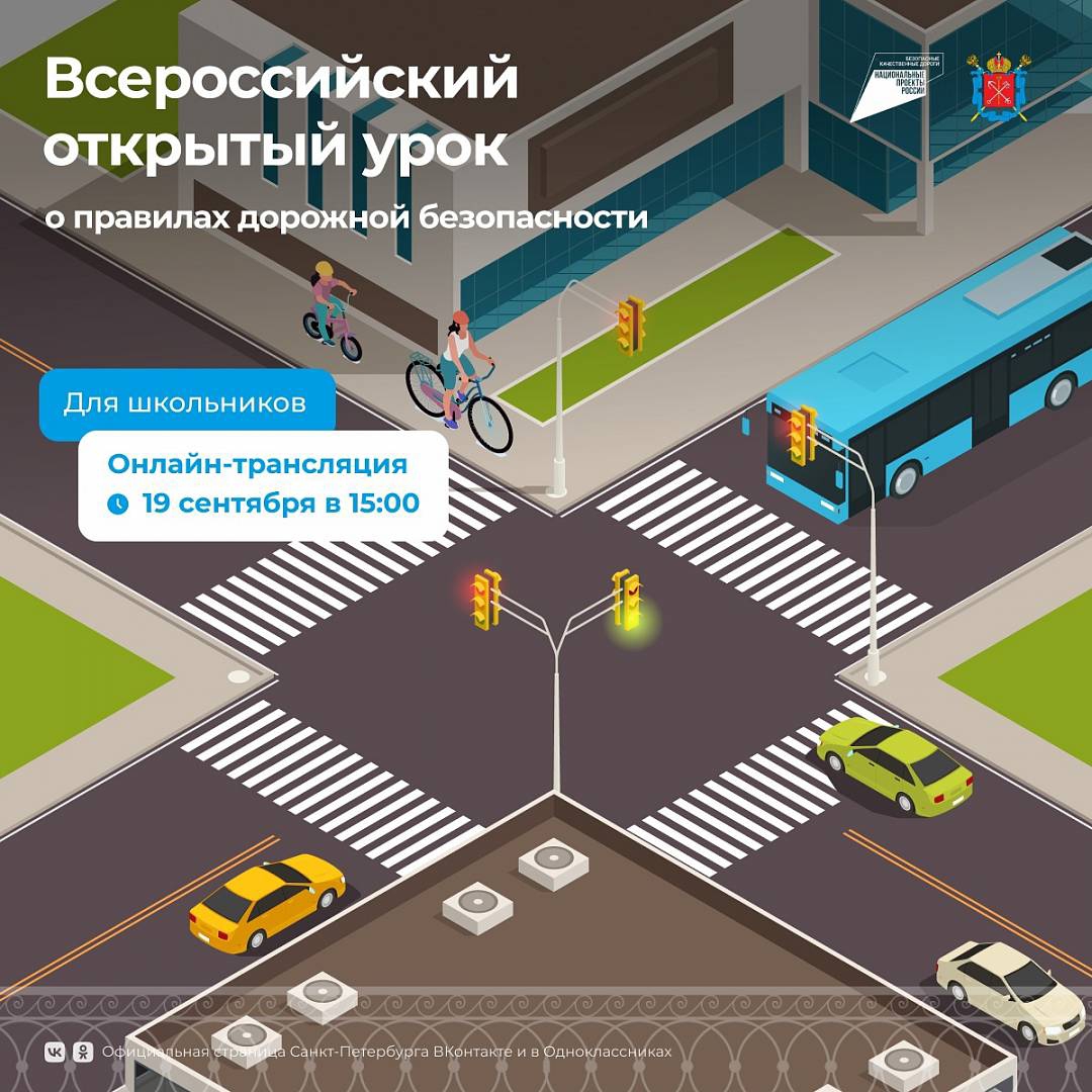 Онлайн–трансляция Всероссийского открытого урока о правилах дорожной безопасности состоится 19 сентября в 15:00. Каждый участник и слушатель урока сможет вспомнить о простых, но важных правилах поведения на дорогах.
