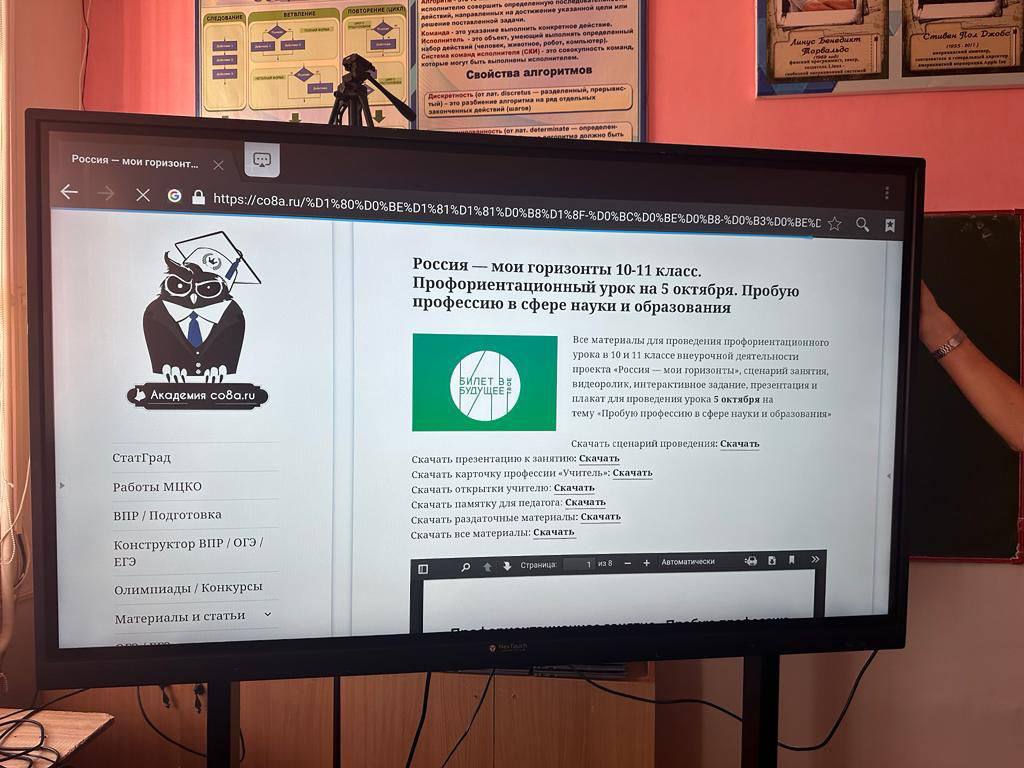 5 октября 2023 года в МБОУ " СОШ 2 с.Закан-Юрт им Д.С. Саитова" прошло занятие профориентационного курса "Моя Россия-мои горизонты" в рамках проекта "Билет в будущее". Тема: Профориентационная диагностика "Пробую профессию в сфере науки и образования»