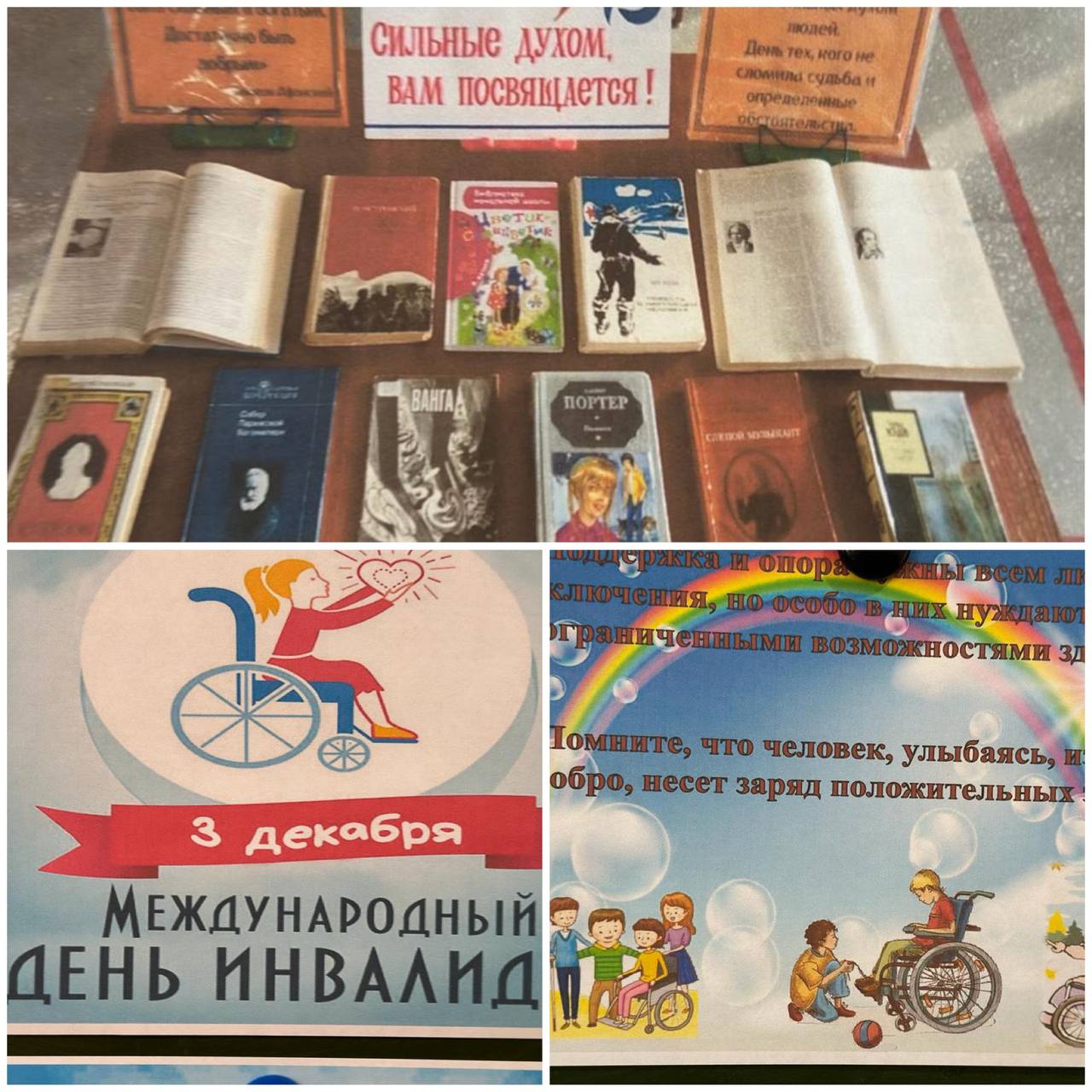 В школьной библиотеке была организована книжная выставка к Международному Дню инвалидов «Сильные духом, вам посвящается!».
