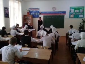 Уроки проводили учитель истории Алханова М.Ш зам дир по ВР Юсупова Р.М., и руководитель ОБЖ Кагиров Р.Т. уроки были проведены с 5 по 11 классов, в обшей сложности на уроках присутствовало 76 учеников школы.