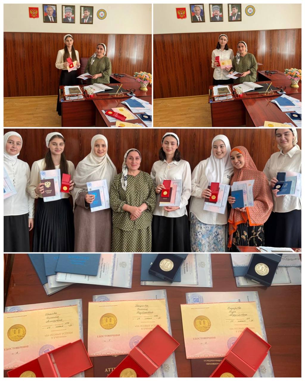 Трое учащихся – Исаева С., Хизирова Х. и Бациева С. – удостоены золотой медали "За особые успехи в учении".
