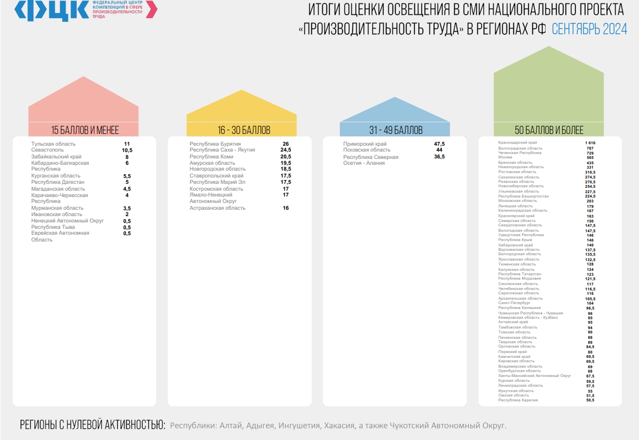 Чеченская Республика заняла лидирующую позицию в рейтинге Федерального центра компетенции (ФЦК) по освещению мероприятий национального проекта «Производительность труда».
