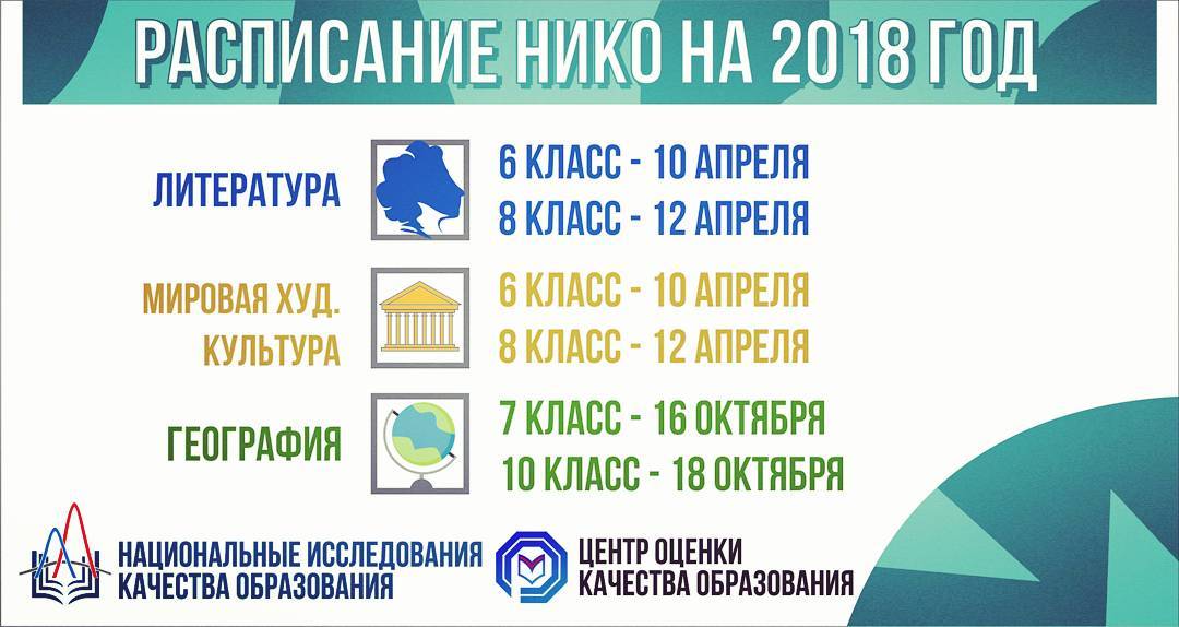 Представляем вашему вниманию расписание проведения НИКО в 2018 году.