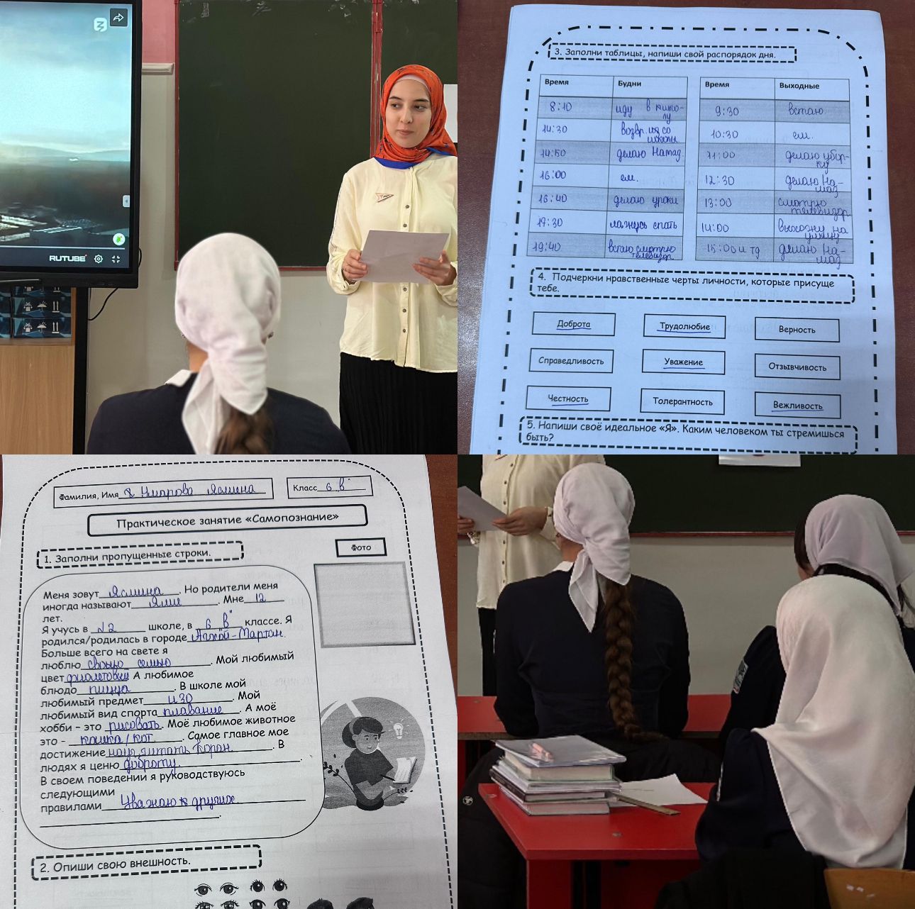 В рамках метапредметной недели, направленной на формирование функциональной грамотности учащихся МБОУ «СОШ №2 с.Закан-Юрт им.Д.С.Саитова», в 6 классе проведено практическое занятие на тему: «Самопознание» , с целью расширения представление у учащихся о вере в себя через практику общечеловеческой ценности – бескорыстной любви.