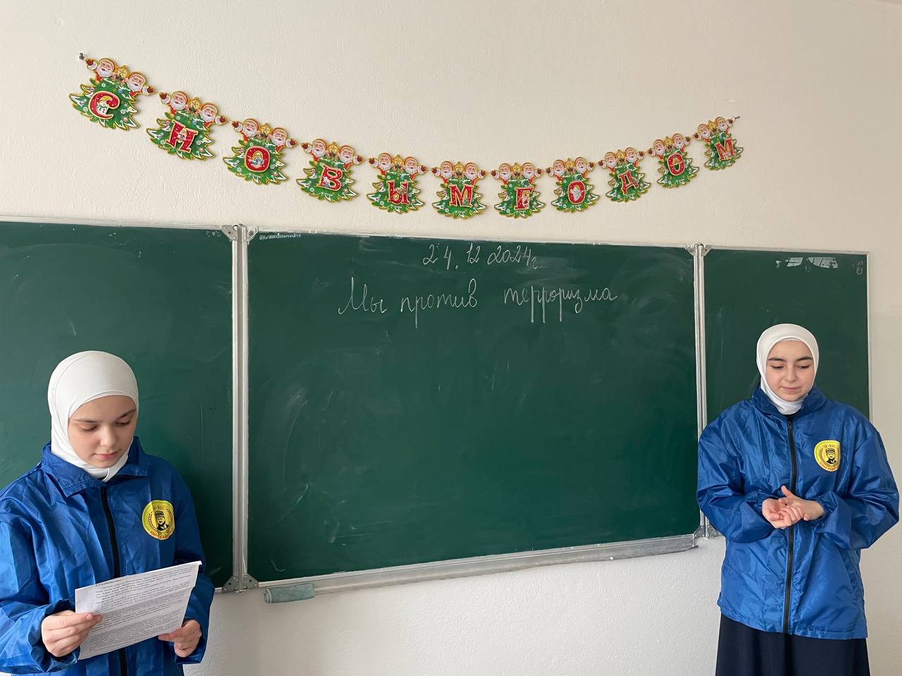 В МБОУ «СОШ 2 с. Закан-Юрт им. Д.С. Саитова» активисты ЮК провели классный час на тему «Мы против терроризма», который стал важным этапом в формировании у учащихся осознанного отношения к этой серьёзн
