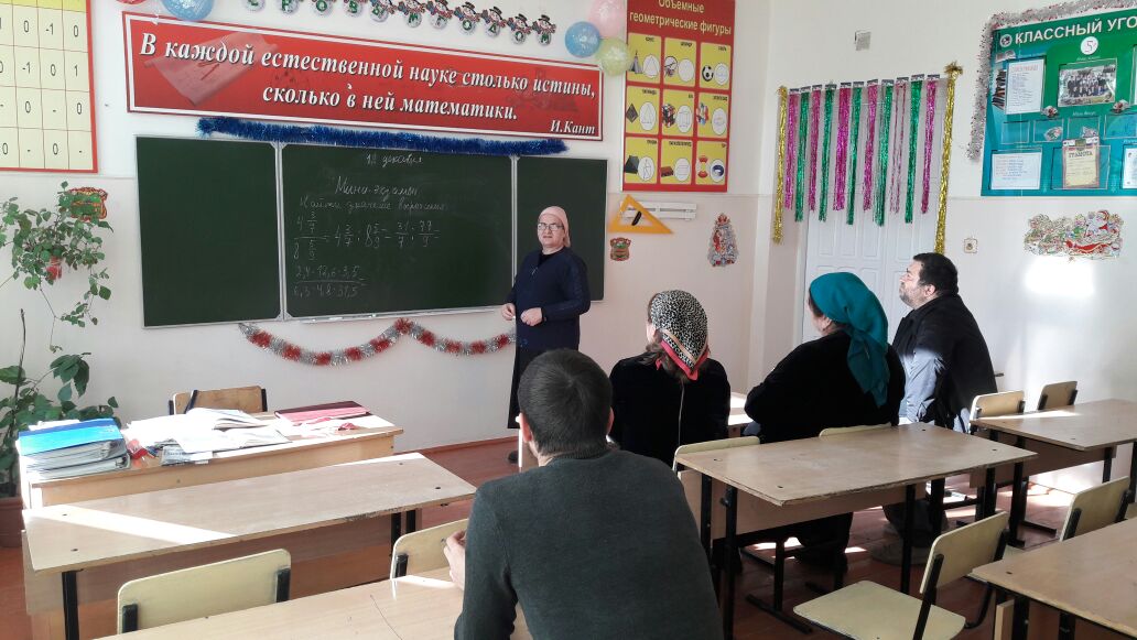 12.12.201712 декабря в МБОУ «СОШ № 1 с. Закан-Юрт» состоялся предметно-методический семинар по математике. Вела семинар учитель математики Заман Магомадова. Приняли участие учителя математики Раиса Адлановна Султанова, Шамиль Денаевич Султанов. Со стороны администрации присутствовали директор школы Роза Ахметовна Акуева, зам. директора по УВР Муслим Лукманович Дасуев, зам. директора по НМР Накали Умаровна Махаева.