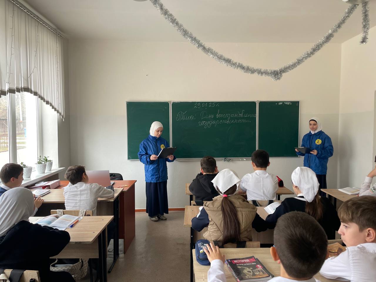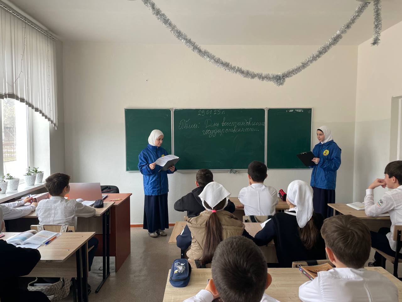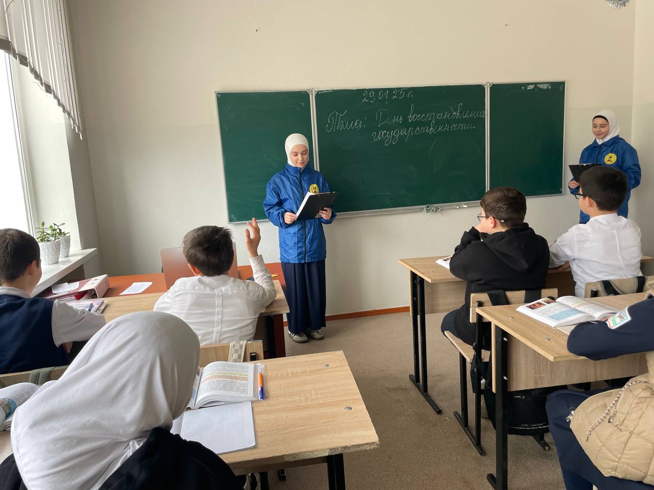 В МБОУ «СОШ № 2 с. Закан-Юрт им. Д.С. Саитова» активистами ЮК был проведен урок на тему: «День восстановления государственности».