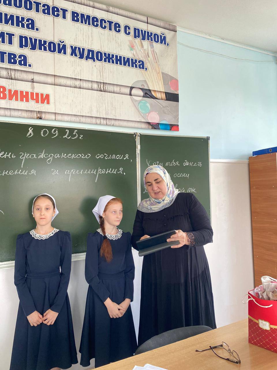 8 сентября 2025 года в нашей школепрошли внеклассные мероприятия, классные часы, беседы ко Дню гражданского согласия,единения и примирения.