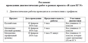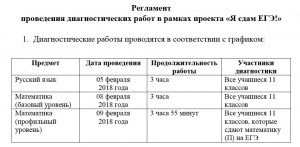 Диагностические работы проводятся в образовательной организации. Начало выполнения работы – второй урок 1 смены. Учебные занятия в других классах, во время проведения диагностических работ, не отменяются.