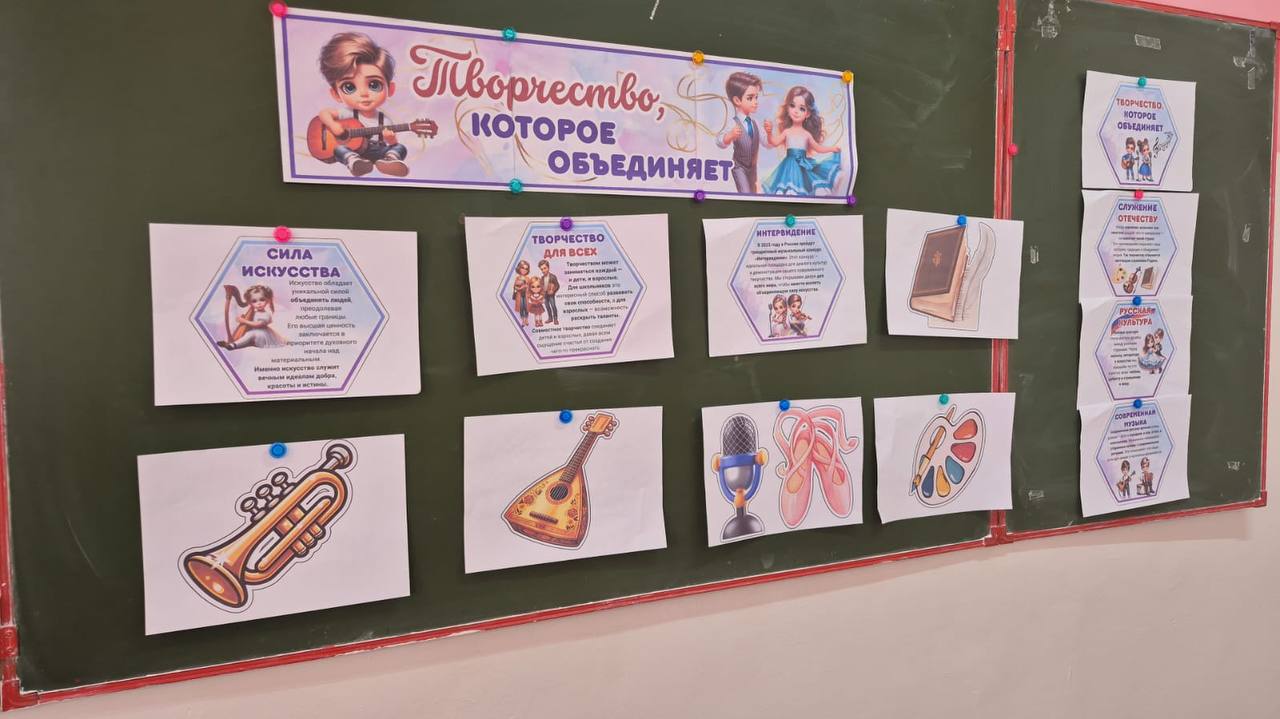 Тема нового занятия — «Творчество, которое объединяет». Его цель — формирование ценностного отношения к творчеству, понимания роли искусства в личностном становлении и духовном обогащении, а также осознание значимости российской культуры как части мирового наследия и мотивация к развитию собственных творческих способностей.