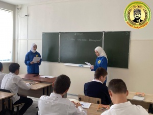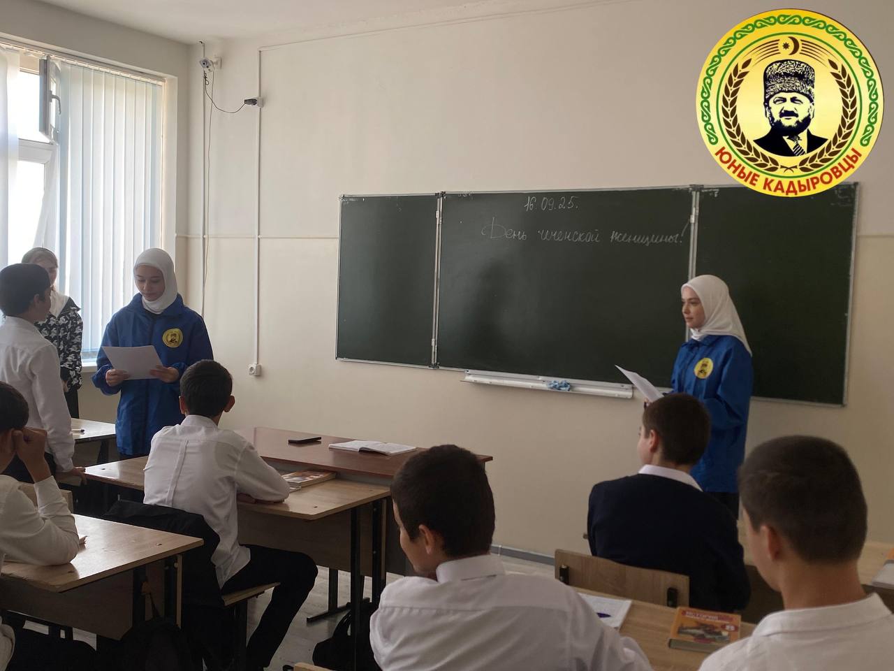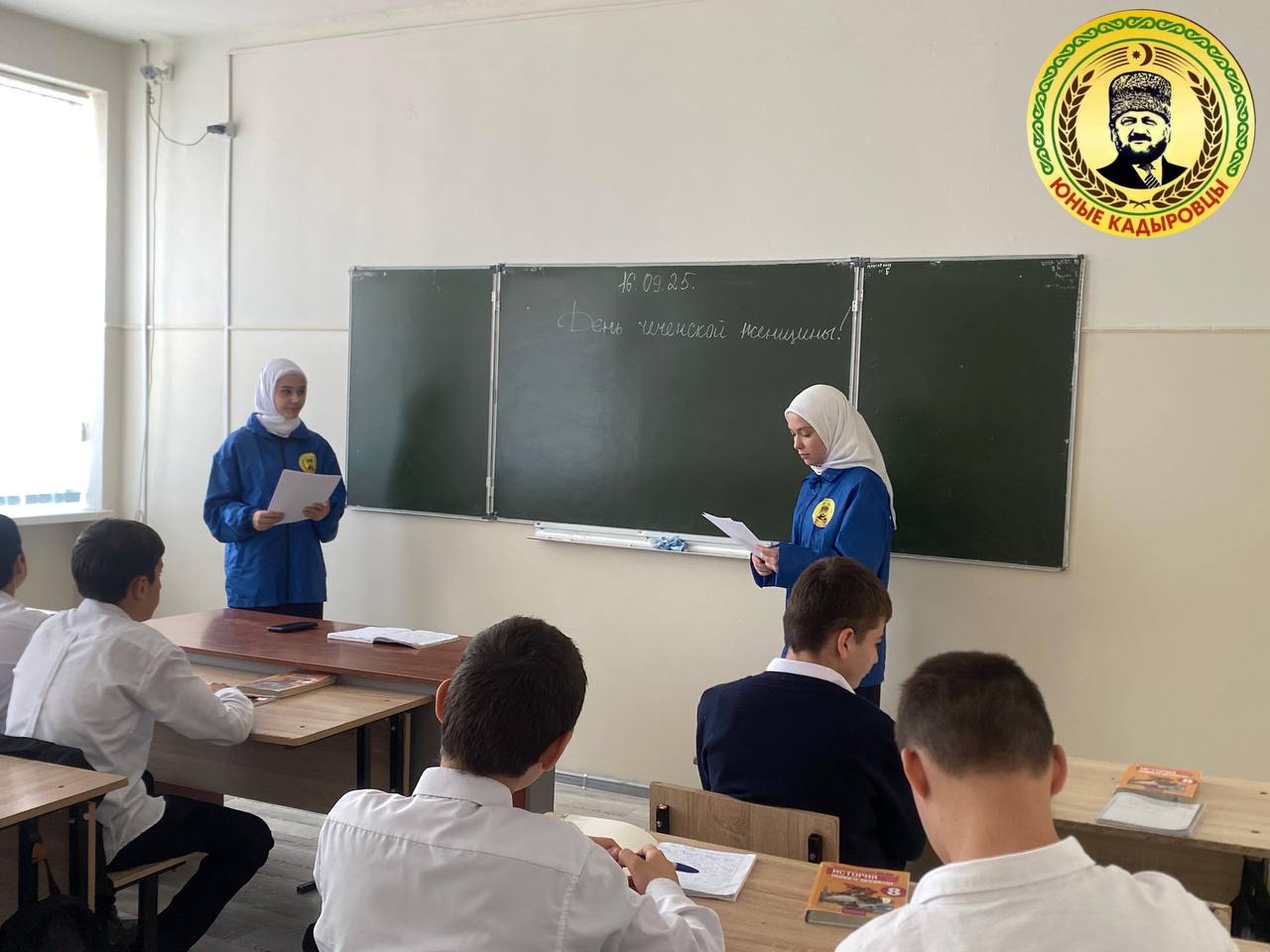 В МБОУ «СОШ №2 с. Закан-Юрт им. Д. С. Саитова» активисты ЧРОО ЕДЮО «Юные Кадыровцы» провели урок, посвящённый «Дню чеченской женщины».