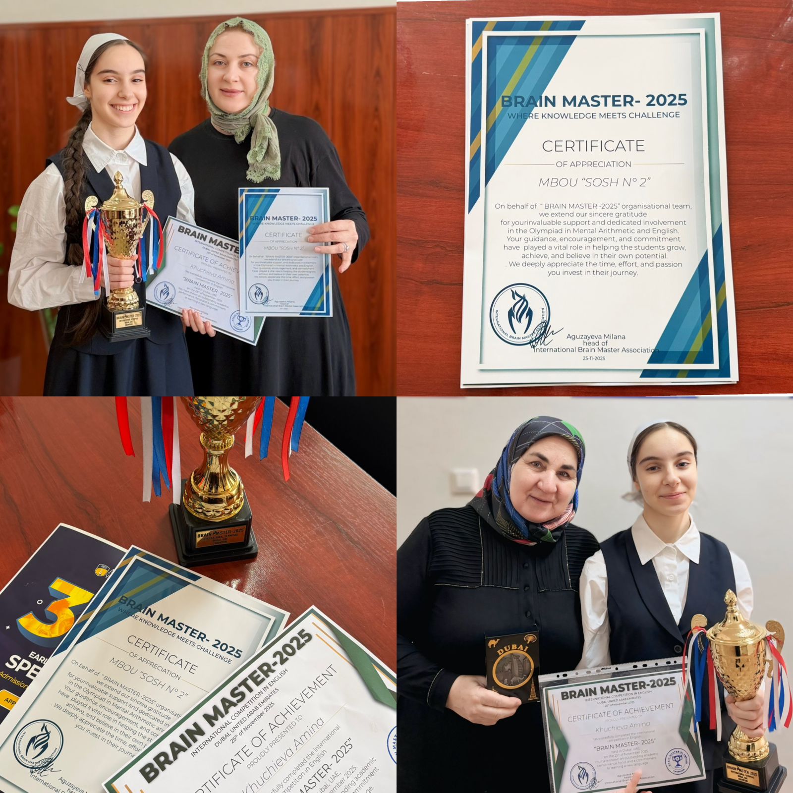 Ученица 10 класса МБОУ «СОШ №2 с.Закан-Юрт им.Д.С.Саитова», Хучиева Амина Муслимовна, проявила выдающиеся способности и продемонстрировала высокий уровень владения английским языком, став Чемпионом престижного международного конкурса, проходившего в Дубае.